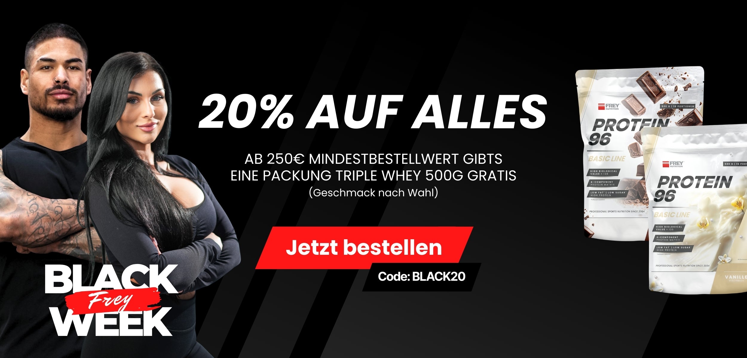 Die Produktpalette von FREY Nutrition setzt für uns Bodybuilder in Deutschland den absoluten Maßstab. Besonders das Whey-Protein in all seinen Formen ist für mich unverzichtbar. Es überzeugt durch herausragende Qualität, exzellente Nährwerte, perfekte Löslichkeit und einen unschlagbar guten Geschmack. Hier stimmt einfach alles – vom hohen Proteinanteil bis zur idealen Verträglichkeit.